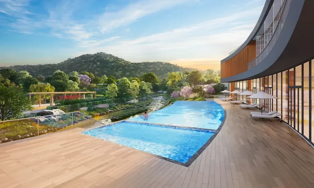 Spread across a large land parcel, this gated community is designed to provide a blend of modern infrastructure and nature-centric living. The project offers spacious plots where homeowners can build customized villas or weekend homes while enjoying lifestyle amenities and strong connectivity to Mumbai and Pune.
